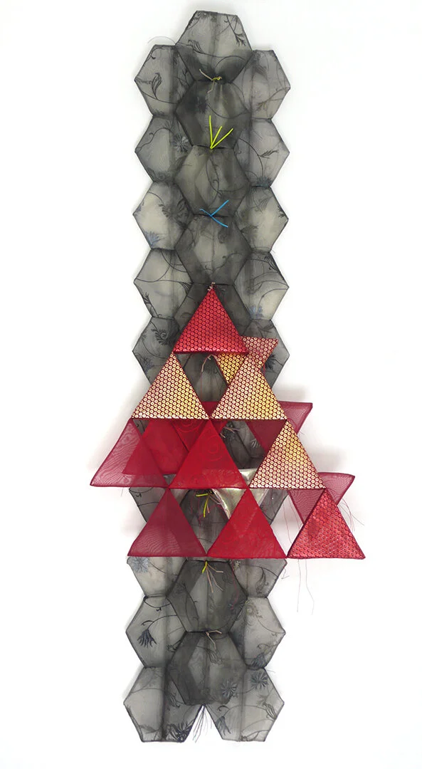 Fiber and textile artist Saberah Malik is best known for her signature transparent textile forms. She uses shibori techniques to explore the intersection between form and color, and makes prodigious use of both flat and spatial disciplines in her work.